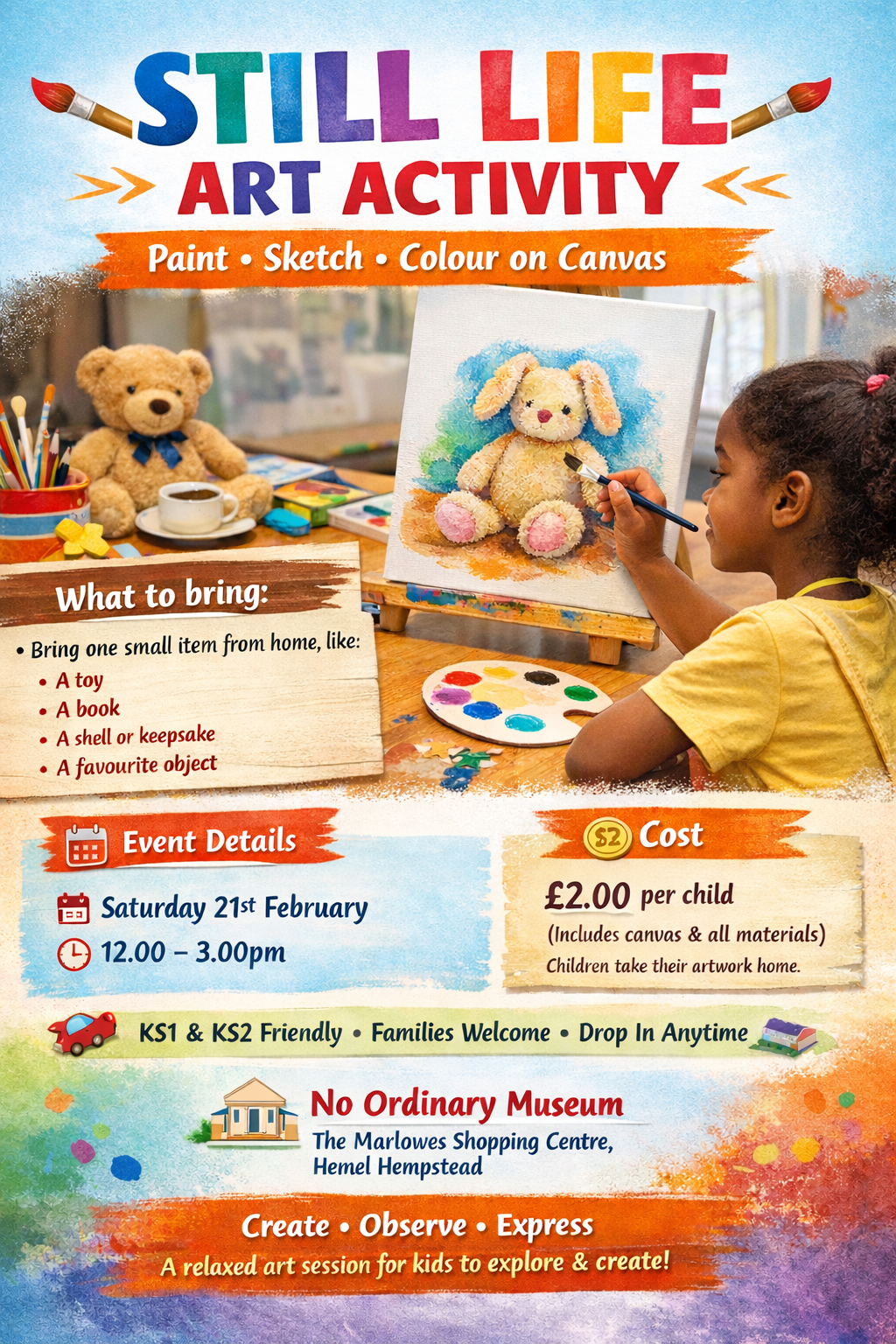 STILL LIFE ACTIVITY SATURDAY 21ST FEBRUARY 2026